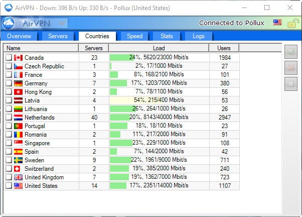客户每月只需 10 美元,即可享受无限带宽并访问所有 19 个国家/地区(如上所列)的服务器。